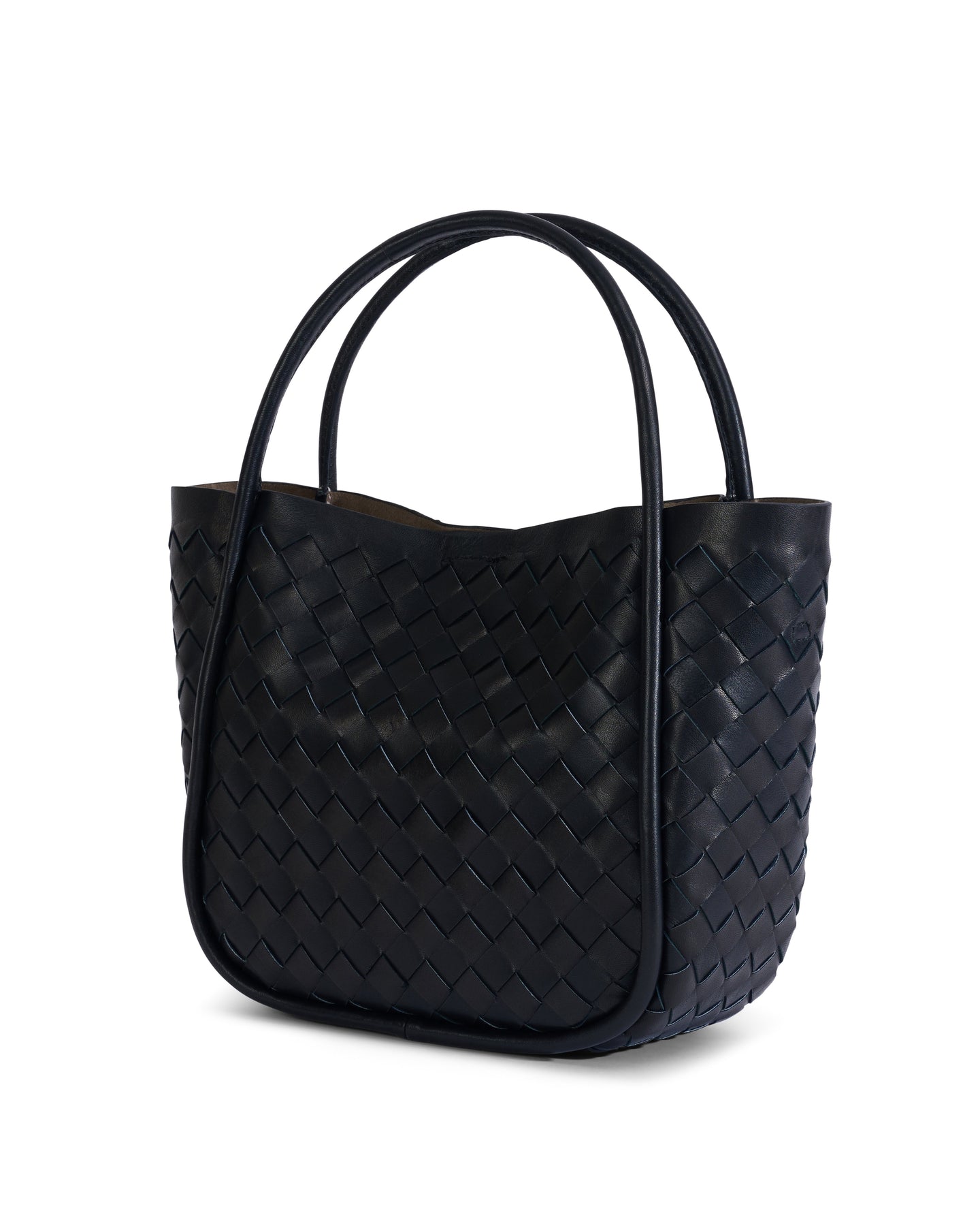 Black woven leather top-handle tote