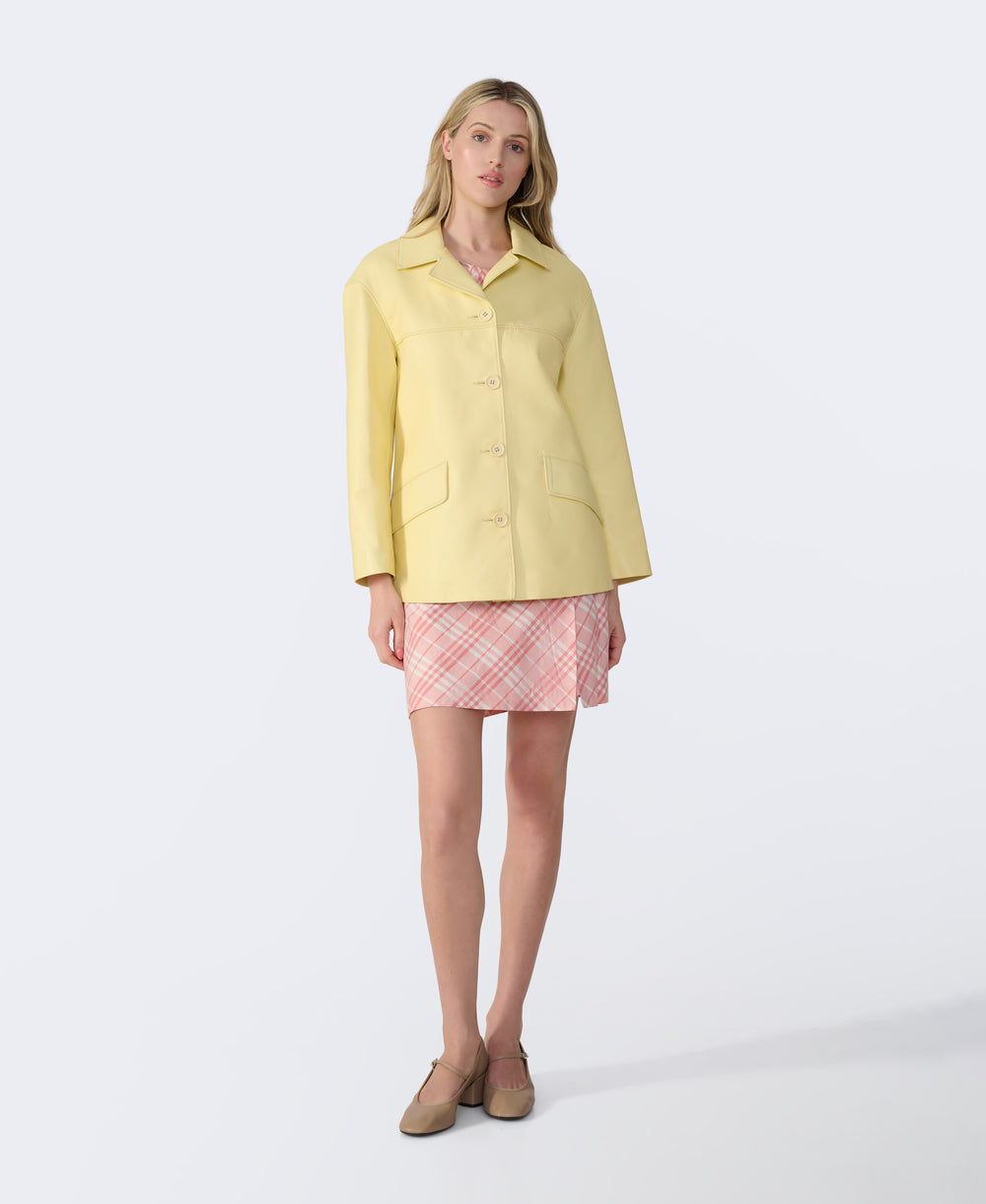 Say hello to sunshine. This Butter Cream yellow leather coat is a breath of fresh air—crafted from genuine premium British leather and designed to bring a light-hearted elegance to your spring wardrobe.