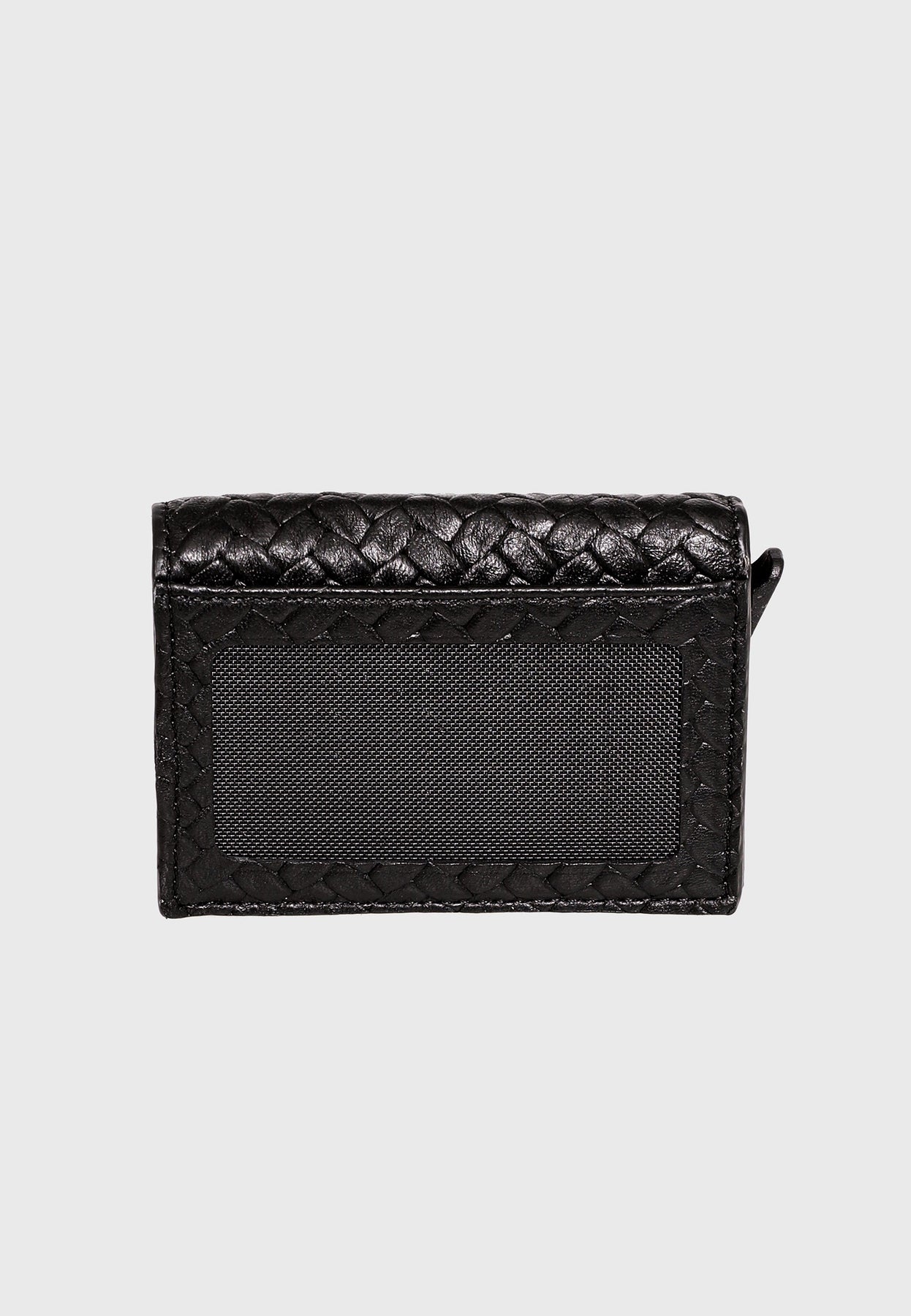 Genuine Leather Weave Pattern Black Trifold Card Holder
