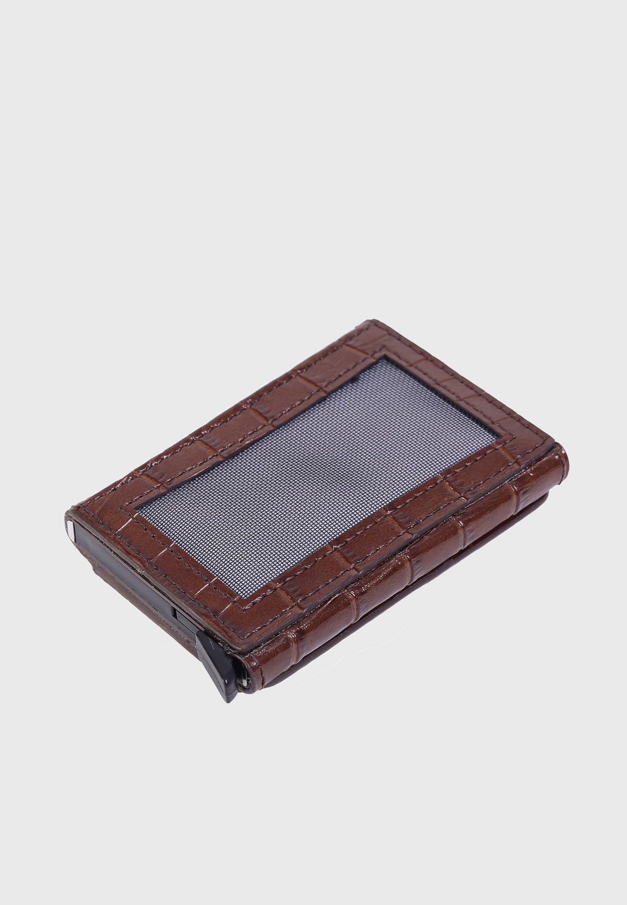 Genuine Leather Crocodile Pattern Brown Card Holder