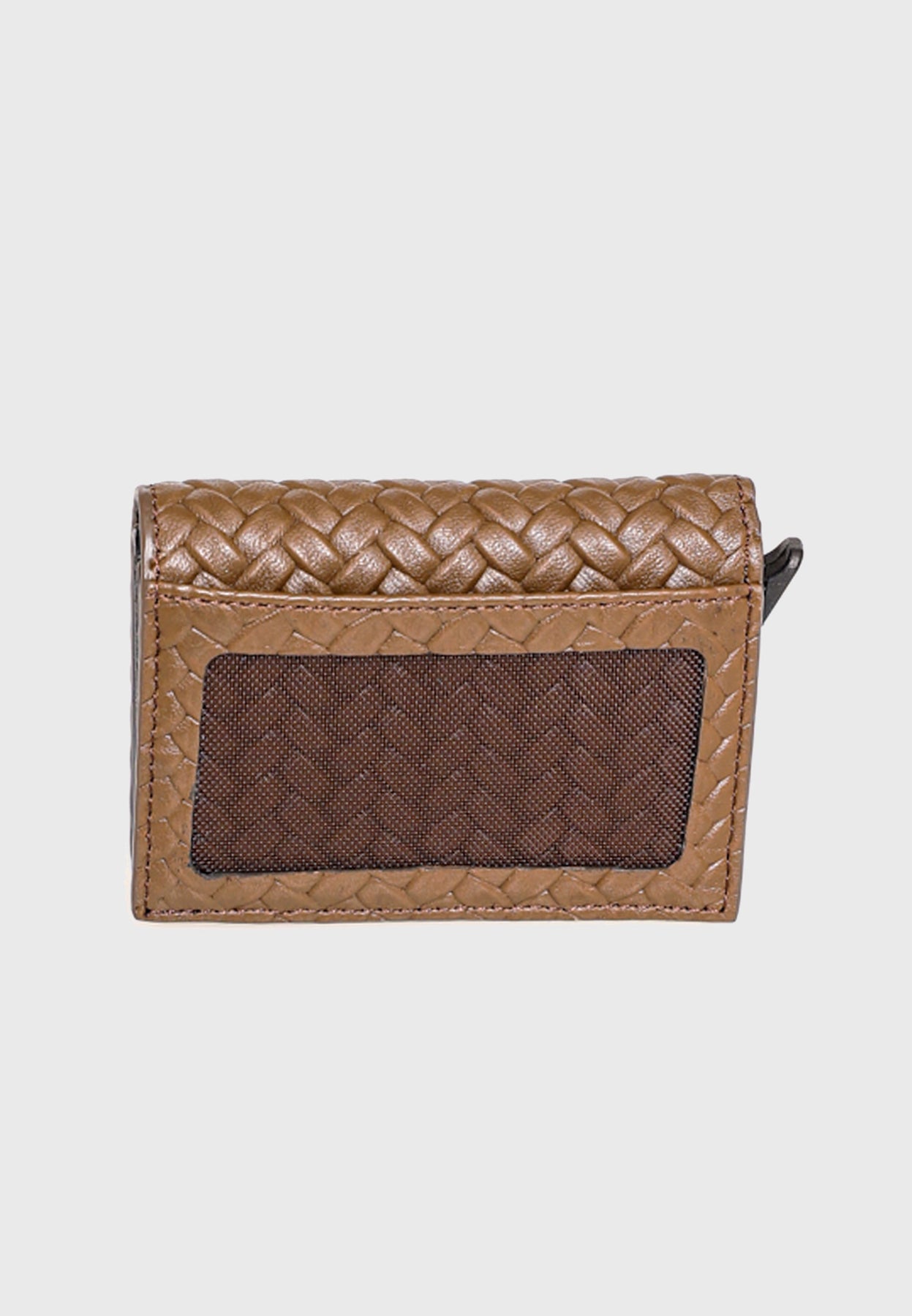 Genuine Leather Weave Pattern Brown Trifold Card Holder