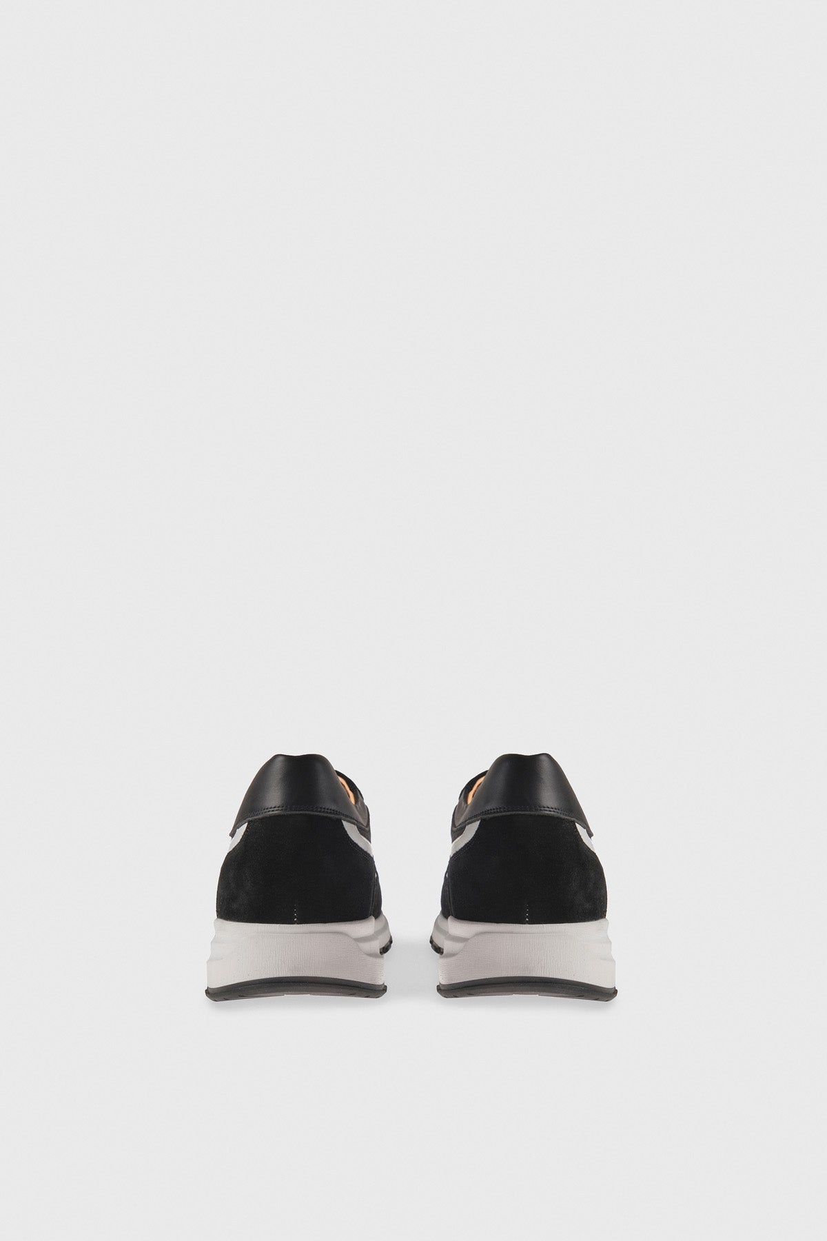 A comfortable and stylish shoe that reflects the harmony of black and white with an elegant line and carries the combination of black suede and black gamba fabric in the same tone.