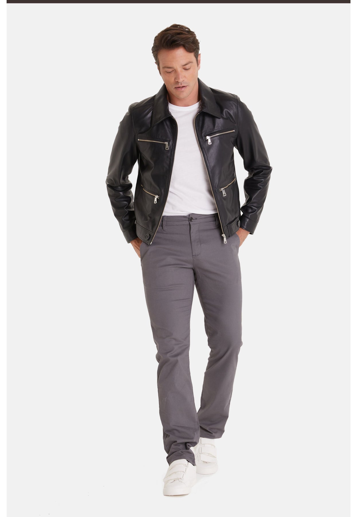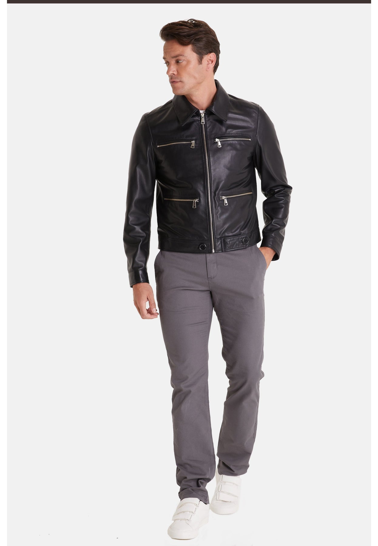 Supple English leather upgraded with a vertical zippered chest pocket that adds a modern twist to a timeless classic jacket. Classic-modern silhouette.