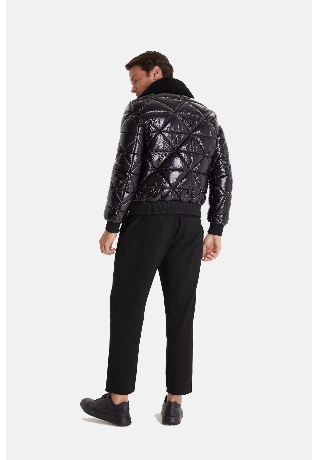 This genuine men's leather jacket is the perfect choice for a walk on a windy day or at night, you'll never feel like a stranger in this stylish leather jacket. The front of the jacket is zippered, the collar is detachable fur. arms and back; shiny and argyle pattern fabric. There is fiber.