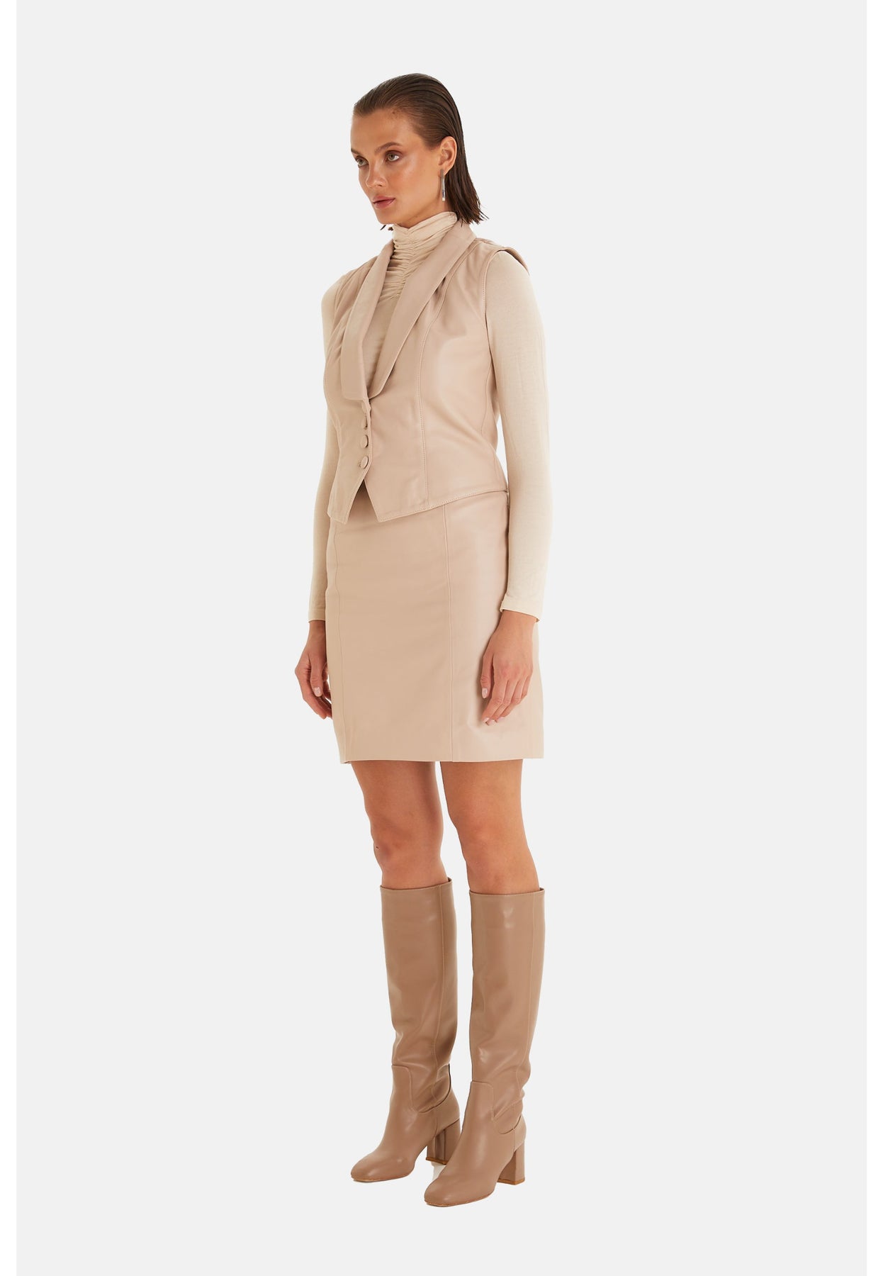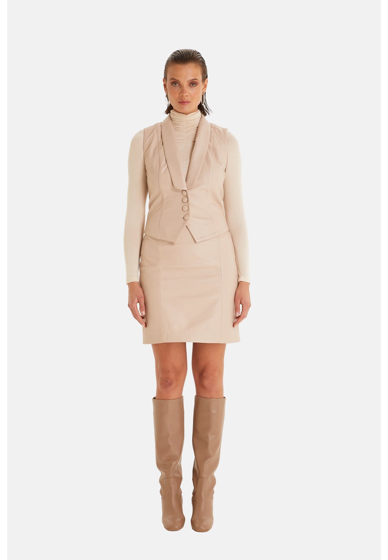 Create a style that suits your style with this vest model made of genuine leather with four buttons on the front.