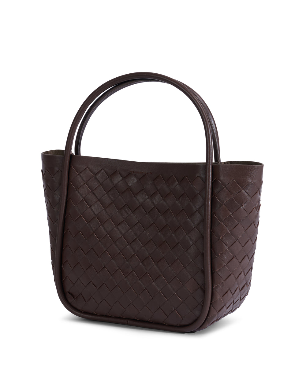 The Portland Woven Leather Top Handle Bag, is crafted from premium British leather in rich chocolate brown. Its compact, structured shape with an artisanal woven finish makes it the perfect everyday companion for both casual and smart looks. Carry with top handle or wear crossbody with elegant long strap.