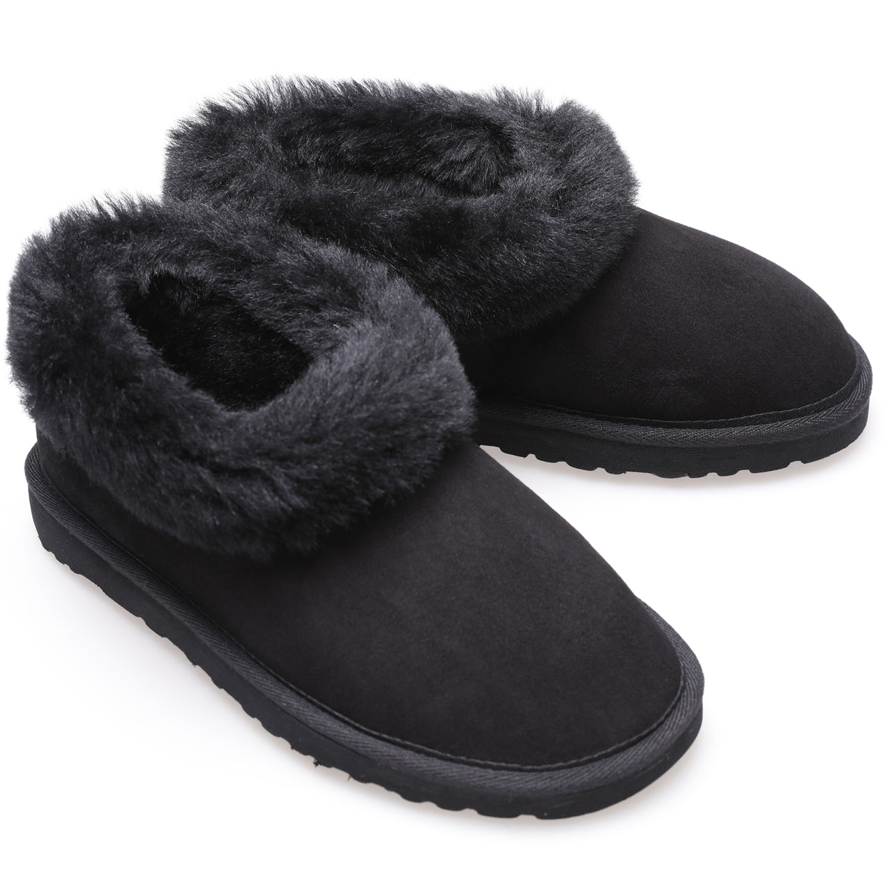 Black suede sheepskin slippers