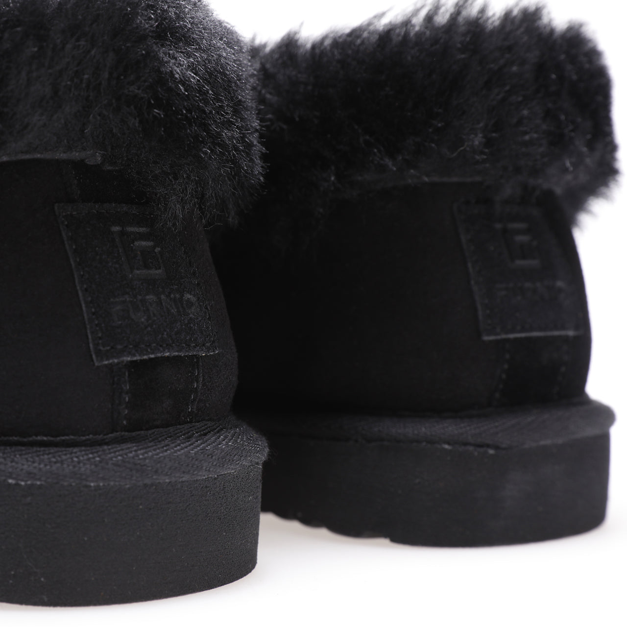 Back view black sheepskin slippers