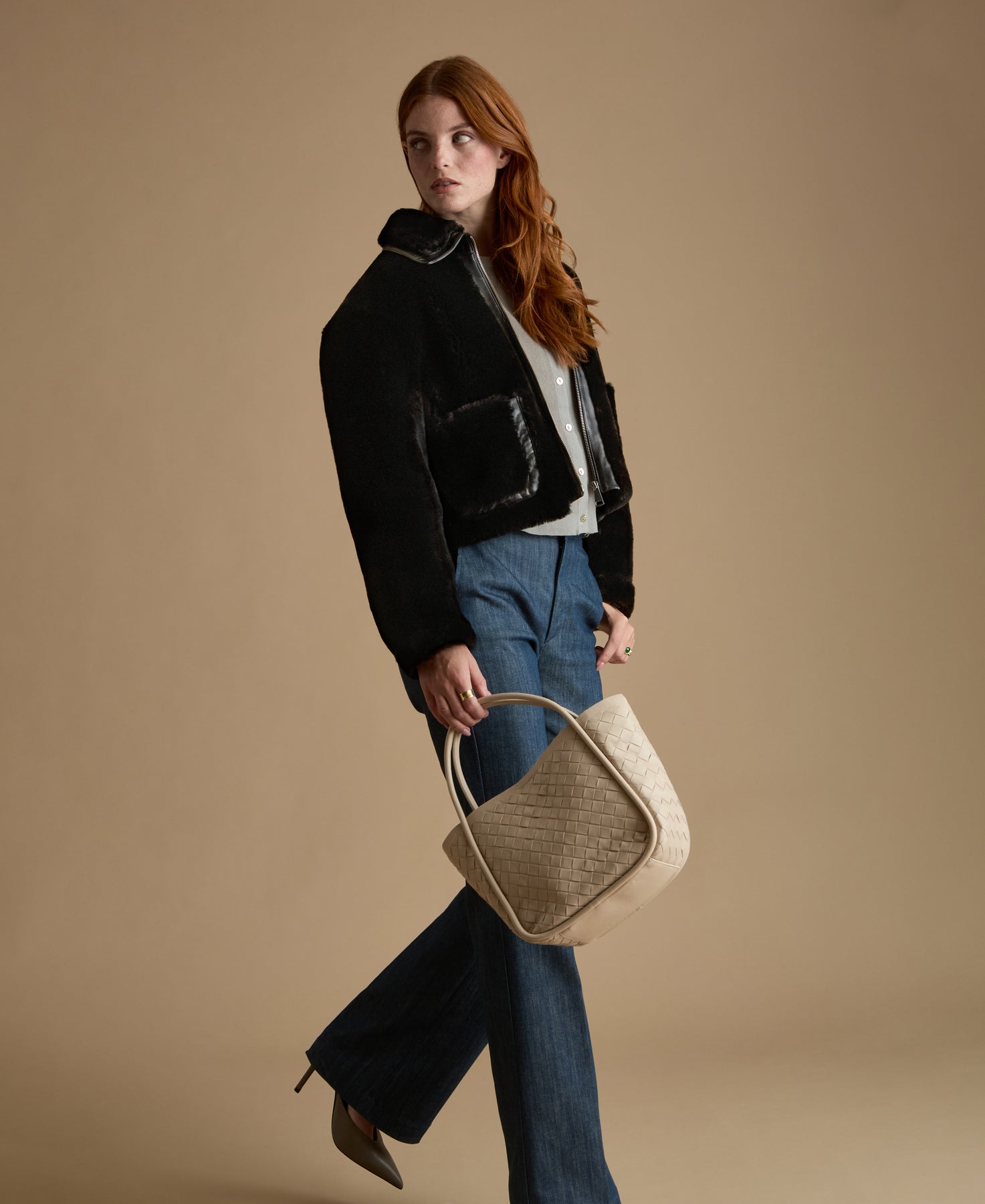 Our Lila Shearling Jacket in brown is cut in a boxy silhouette featuring a sturdy front zip, wide collar and practical front patch pockets. A modern take on classic shearling outerwear, designed to elevate everyday winter dressing with ease. The plush shearling in contrast with nappa leather detailing makes for a statement winter look.