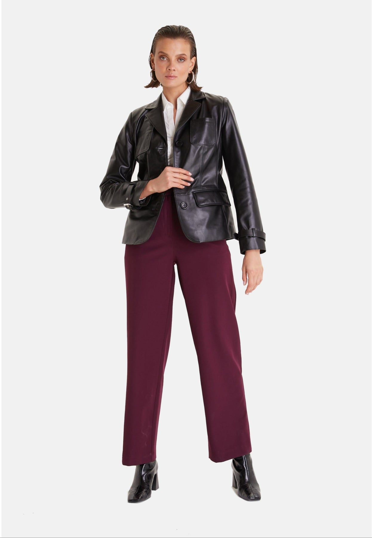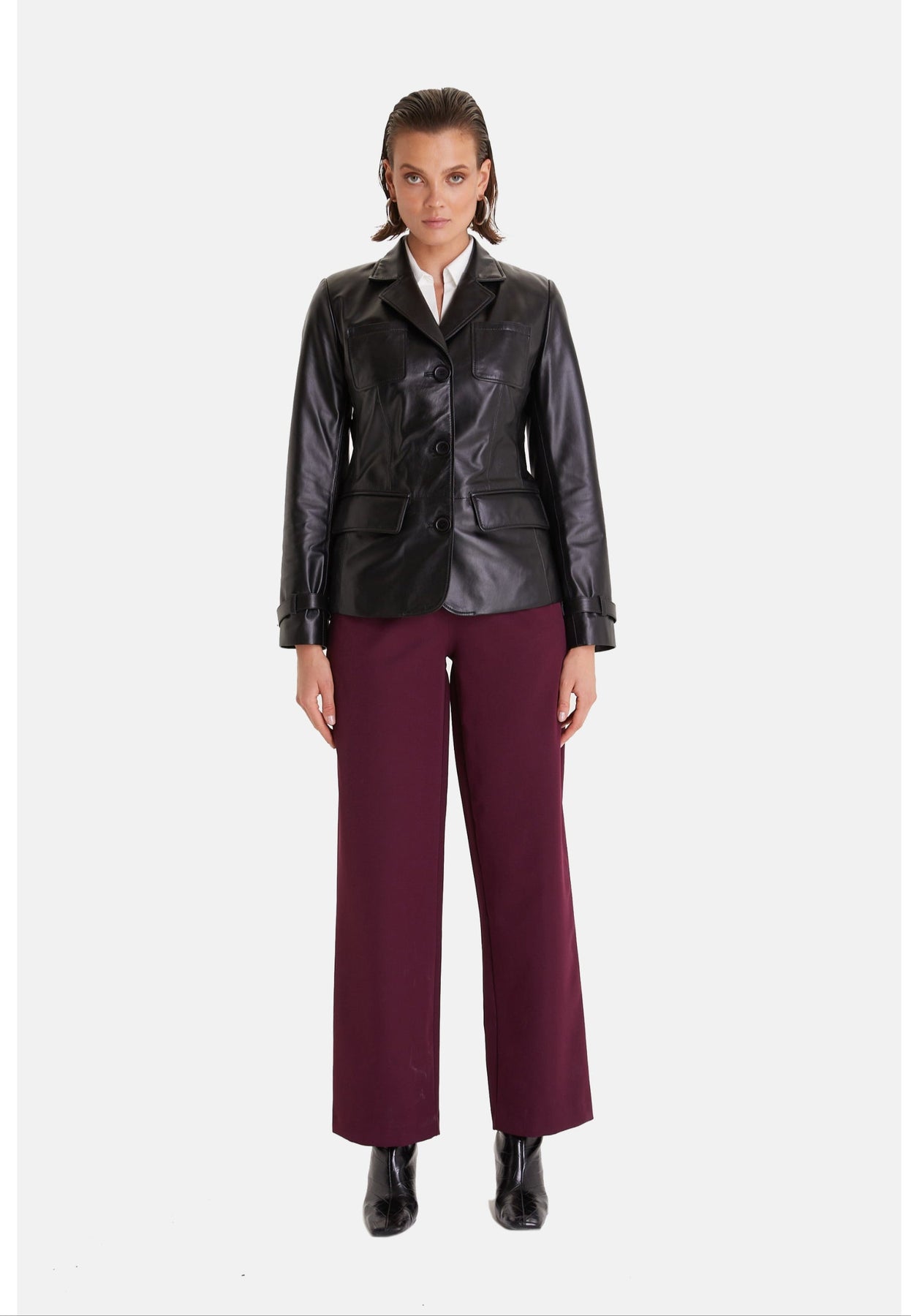Women's Genuine Leather Safari Jacket is detailed with durable buttons, two patch pockets at the waist, two flap chest pockets and one zippered sleeve pocket. A great choice for fashion!